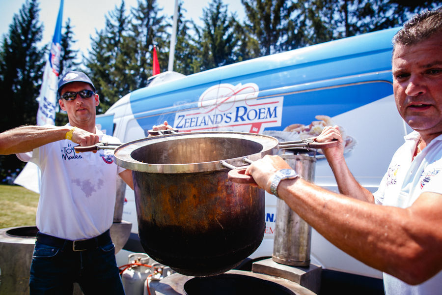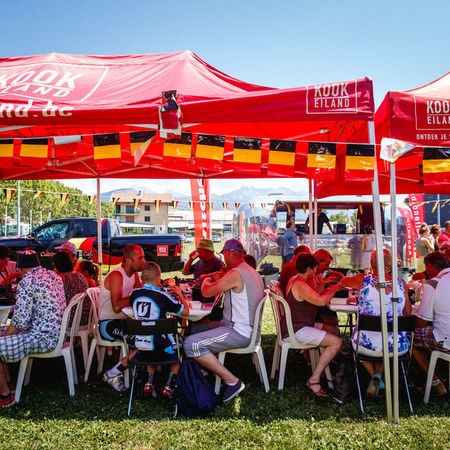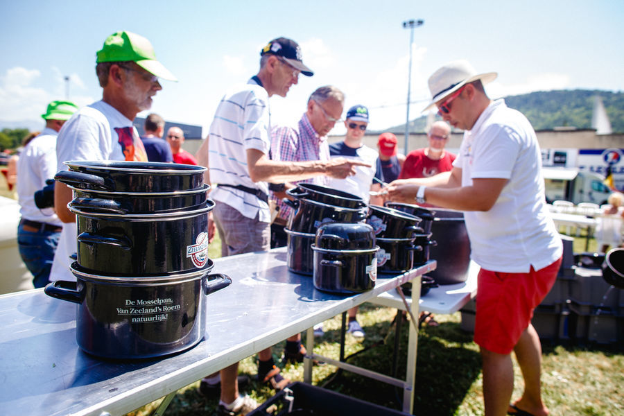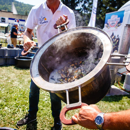 This year we will be serving a three-course menu in our Fanvillages (first course-main course-dessert) for € 7 per adult and € 3 per child until the age of 12. Our annual musselparty will take place on 22nd July, the second rest day, in Nîmes (location Château l’Ermitage: route de Nîmes, 1301 Chemin d'Auzan, 30800 Saint-Gilles). That day we will be serving mussels with French fries for € 10 per adult and € 5 per child until the age of 12. It’s important to sign up in advance for this musselparty! Also signing up in advance for the other Fanvillages is advised and you can do that starting from now via the contact form.