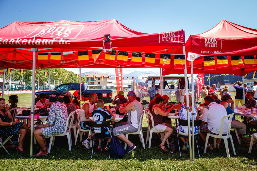 A feel-good Deceuninck - Quick-Step team atmosphere with music, live cycling, entertainment and traditional Belgian food and beers are the core of the Fan Villages. There are also daily competitions from the team and its partners.
