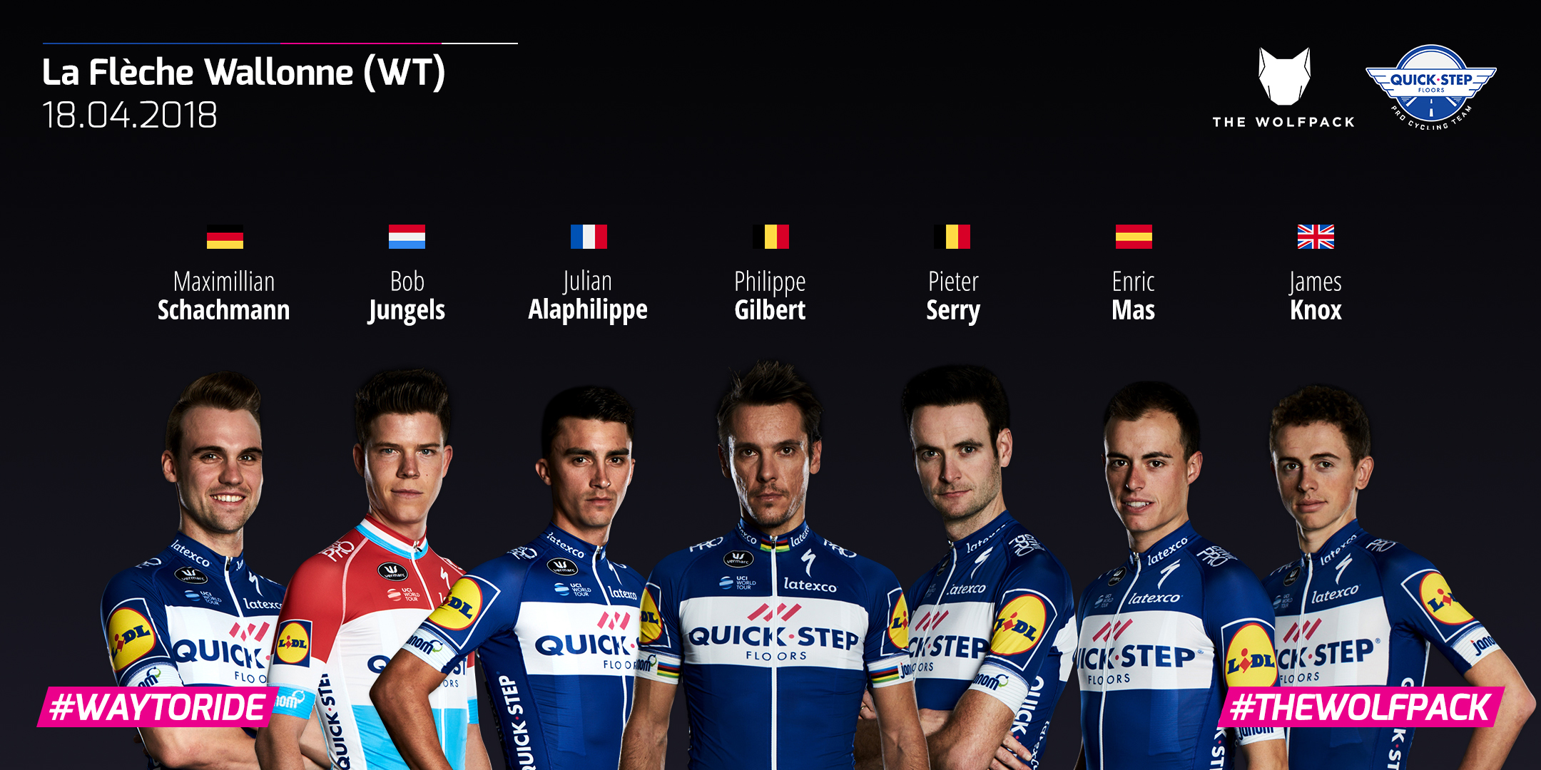 Luxembourg Champion Bob Jungels, neo-pro James Knox, Vuelta al Pais Vasco stage winner Enric Mas, Maximilian Schachmann – who got his maiden victory in March, at the Volta a Catalunya – and Pieter Serry will round up our team for the 82nd edition of the Belgian race.