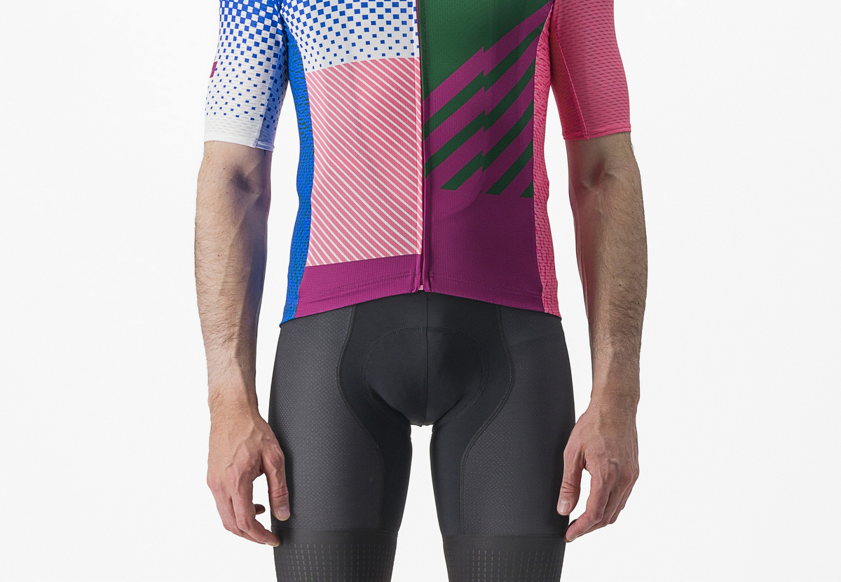 The Wolfpack Giro jersey evokes the bold graphics of the famous Tour de France combination classification of the ‘80s, which fans are nostalgic about even now, with the colours of the Corsa Rosa, including pink, green, ciclamino and blue – everything arranged in a playful style. Blue also represents the identity of the team, which has made us stand out from the peloton in the last two decades, and is present on the front in a nod to the first ever Quick-Step jersey, in 2003. Last but not least, the zipper slider comes in the form of the iconic spiral-shaped Senza Fine trophy, adding another special touch to this collector’s jersey.