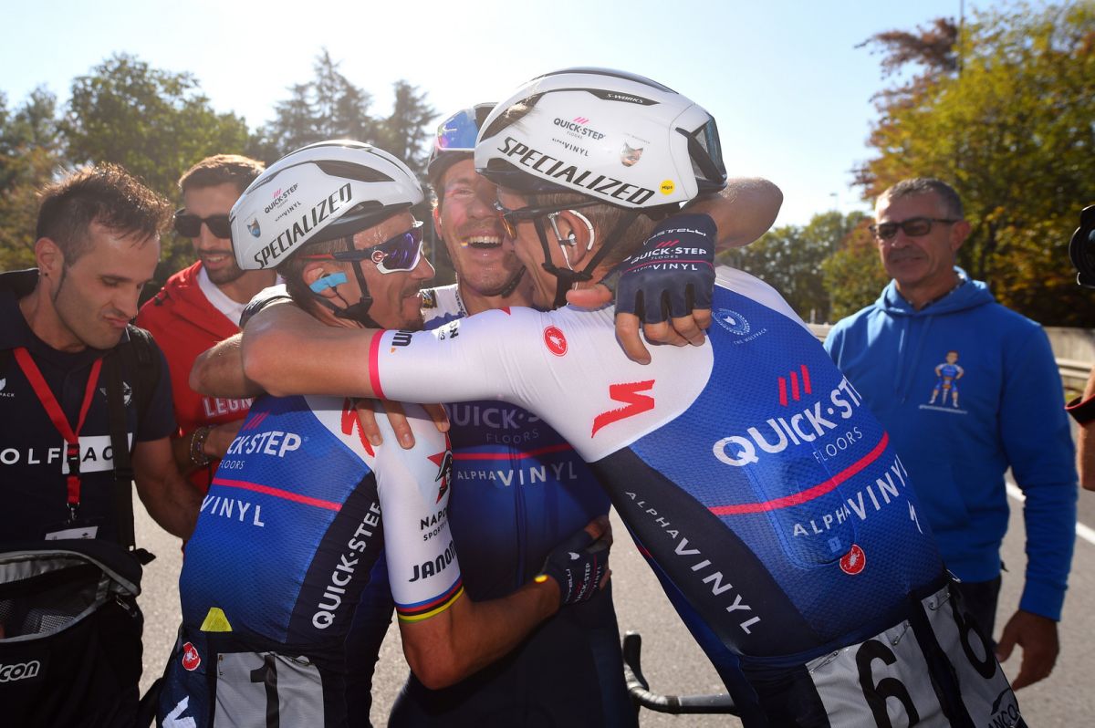 When they did, with eight kilometers to go, Quick-Step Alpha Vinyl stormed to the front and set a ferocious tempo until the last two kilometers for Davide Ballerini, who then placed himself in the wheel of Matteo Trentin (UAE Team Emirates) and remained there until the final 200 meters, when he launched an explosive sprint that brought him his second victory of the season after the one on stage 4 of the Tour de Wallonie, at the end of July.