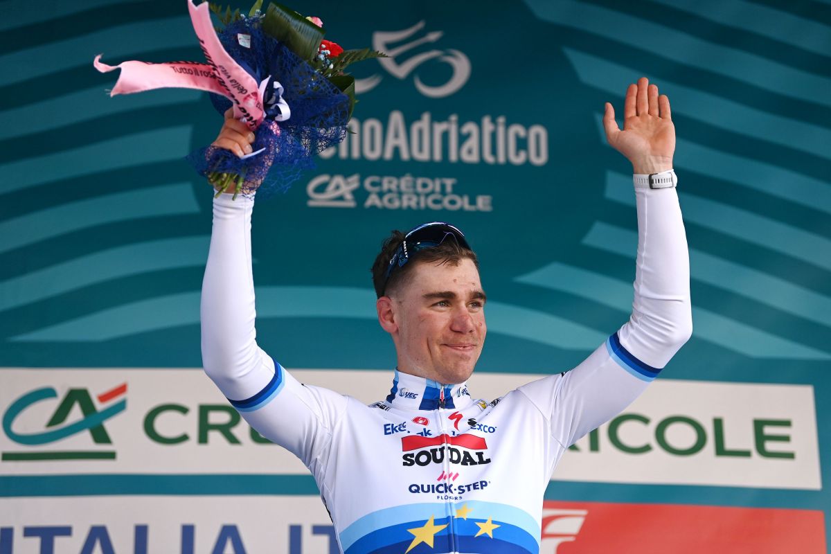 Fabio Jakobsen won de tweede etappe van de Italiaanse rittenkoers na een sterke versnelling in de laatste meters. Hij bezorgde Soudal Quick-Step de twaalfde zege van het nog jonge seizoen. Voor Jakobsen betekende het zijn 40e zege in zijn profloopbaan